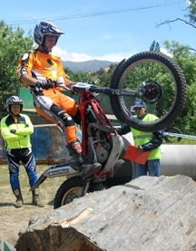 Por último la zona indoor este año estuvo mas completa incluyendo incluso un remolque. En esta zona es donde mayor numero de publico se congregó si bien ninguna de las zonas estuvo vacía, y es que su cercanía ofreció a los aficionados la posibilidad de ver el trial entero. Los alevines a su vez tuvieron sus zonas a parte y esperaron como viene siendo costumbre a que sus padres acabasen sus participaciones. El tiempo nos tuvo a todos locos durante la semana previa anunciando lluvias para el domingo, al final tuvimos sol y nubes y un viento que algunas veces resultó molesto. A las 10 de la mañana se dio comienzo a la carrera con un total de 44 pilotos inscritos. TR1 En la máxima categoría tuvimos a seis pilotos, entre ellos Marcos Méndez hizo un trial perfecto sin marcar un solo punto ganando en su vuelta a los triales extremeños.