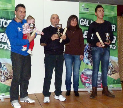 El pasado sábado 26 de enero se procedió a la entrega de los trofeos y diplomas correspondientes a la temporada 2012 de las diversas especialidades del motociclismo extremeño. Todos los pilotos premiados estaban invitados a la gala que se celebró en el restaurante El Jardín del Pensador de Plasencia. La ceremonia de entrega de trofeos empezó a las 8 de la tarde, una vez acabada todos los pilotos y acompañantes fueron invitados a tomar unos aperitivos en las mismas instalaciones del restaurante. En cuanto al trial se refiere, este año se ha contado con un total de 32 pilotos federados en las diversas categorías que han competido en seis pruebas puntuables, estos son los resultados finales: TR1: TR2: TR3: