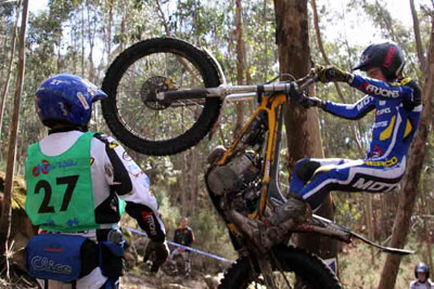 Tras ellos empatados Javier Oliveira con Gas Gas y Miguel Prieto con Sherco, y dos pilotos que vuelven como Manel Botana con su bonita Ossa tuneada al más puro estilo pretemporada de motogp y José Botana con Montesa. Se retiró Santiago Aguiño con Ossa resentido de una lesión. La segunda vuelta aclararía un poco más las posiciones abriendo otros frentes de lucha por las dos posiciones que Ángel deja libres en el cajón. De nuevo se deja notar el paso de los pilotos por las zonas complicándolas más, aunque a Anselmo no parece disgustarle y su vuelta le mantiene en segunda posición por delante de un empate entre Javier y Jaime que también quieren cajón. Mientras Carlos repite tarjeta y no está lejos de esta lucha y por delante de Lumbreras que recupera puestos y deja claro su nivel y experiencia con este tipo de pruebas. Los siguientes sí notan ya esta situación, alejándose, pero en su lucha particular por la mejor clasificación, así José Barros, Gerardo, Marcos, Mario, Javier, Juan Martínez, Francisco, Miguel y los Botana completan los puestos.