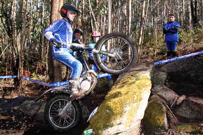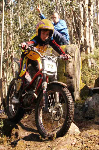 Las zonas estaban en un bosque cerrado de eucalipto con un cierto desnivel sobre tierra de montaña gallega típica y altas rocas con bastante musgo, que le añade otro punto resbaladizo con la humedad de la lluvia de los días anteriores, y que cargarán los puntos realizados por los pilotos en las distintas categorías. O sea, una dura jornada de trial en la que todos rindieron al ciento diez por cien luciendo todas sus habilidades y exprimiendo su estado de forma física para sortear en cinco horas los pasos y puertas seleccionadas por el club, empezando por: TR4 Nutrida participación en esta categoría, que contó además con una sorpresa agradable. La visita de un joven y prometedor piloto Asturiano que no quiso perder la oportunidad de estar con sus amigos gallegos y aprovechar la doble jornada del fin de semana para entrenar de cara a su participación en el CET. Rodrigo Marchal nos acompañó en este trial y fue el primero en presentar una tarjeta a cero tras completar la primera vuelta, dejando claras sus intenciones de victoria con su Gas Gas 80 cc.
