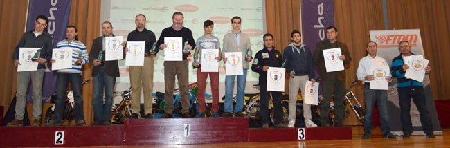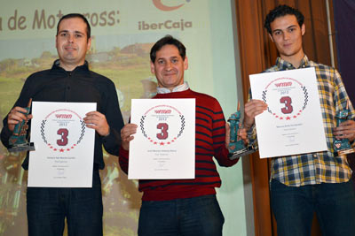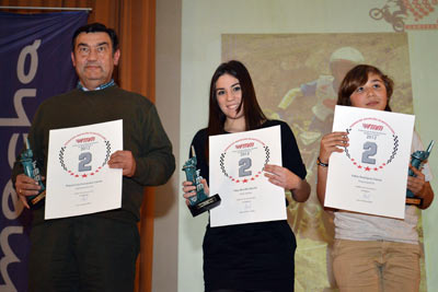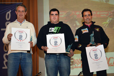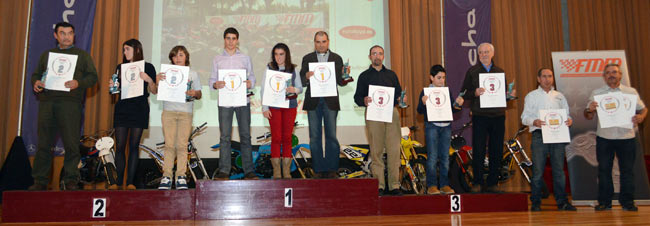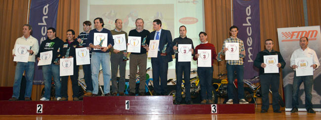 También se entregaron las placas al mérito deportivo, destacando las ofrecidas a Fernando Gutiérrez por su labor en su periodo como presidente y a las jueces de trial Conchi Estevez y Maripaz Ramal, así como a los Ayuntamientos de Lozoyuela y Becerril de la Sierra. El acto comenzó a las 13 horas y se alargó hasta casi las 15, siendo los trialeros un año más los últimos en recoger sus trofeos.A destacar que los diplomas tras más de 12 años con el mismo diseño por fin cambian a uno mucho más actual. Los premiados en la especialidad de trial fueron los siguientes: