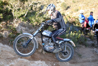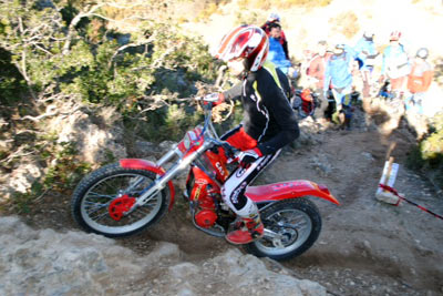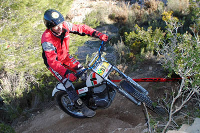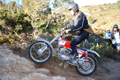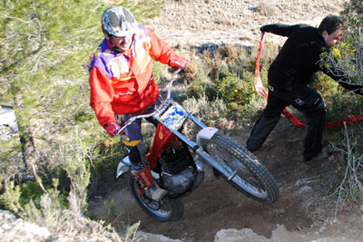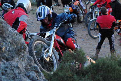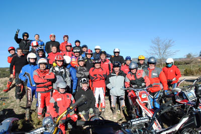Tambien asistieron las mujeres de la mayoría de nosotros. Seguro que me dejo alguno, pero es que estaba muy pendiente de las zonas, de la trazada, de los comentarios de los que saben. Desde la primera zona se notó el nivel con lo que Javi y su hermano marcan las zonas, no importa que lleves una Pre65 o una 247 Puma Racing, una moderna 4RT o una modesta 348 como es mi caso, todos disfrutamos, todos penalizamos, todos hicimos algún cero y todos lo pasamos genial. Fue fantástico el encuentro de pilotos de distintas zonas de la comunidad Valenciana, los comentarios de lo bien preparadas que llevan las motos algunos, que si ya le he hecho las suspensiones, que si tengo otra moto preparándola, que si tienes que retrasar las estriberas, todo era trial en estado puro, y Javi Gil haciendo de Cicerone, marcando las zonas el primero con una Merlin, sin miedo, claro se las sabe de memoria y no quería quedar mal delante de los amigos. A eso de las 15:00 y con el apetito a flor de piel, disfrutamos de una fabada asturiana para 50 personas, que hay quien repitió tres veces. Fue una comida distendida; comentando zonas y quedando para volver a repetirlo. Al final de la jornada los padres de Javi y su mujer fueron testigos del afecto y del calor con que respondimos ante un día que salió un poco frio por el viento. El próximo año seguro que Javi le encantará volver a celebrarlo, esos si cuidado que seguro que busca fin de semana con lluvia, para subir un poco de nivel las zonas.