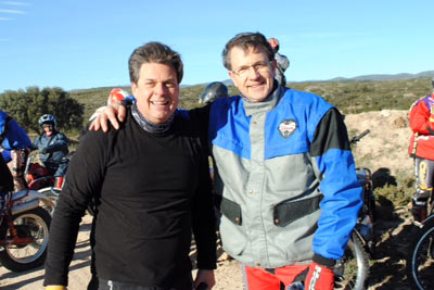 Tampoco nos libramos nadie de marcar un fiasco, ni Rafa Sirvent, Ni Mario Juan ni el mismísimo Hector Escoriuela. En segundo lugar, antes de empezar hubo un almuerzo de "germanor", donde el jamón, el vino y esas aceituna preparadas con cariño, no faltaron. Después al final del trial, las mujeres, especialmente su mujer Mónica, nos deleitaron con unas alubias con chorizo, embutido, panceta, ensaladas, porrón de vino, tartas de queso, de flan, de coca de llanda, vamos que recuperamos las calorías quemadas y las que nos había robado el viento frio de la mañana. Ellas hicieron una excursión y me consta que tampoco pasaron frio. Pero lo que más me gustó fue la compañía y complicidad de los invitados que asistieron, allí había una buena parte del trial de clásicas de, nuestra comunidad Valenciana, desde el Tari, Cupido, Raul Agramunt, Toni Garner, Rafa Carva, Néstor, Jose María Martinez, Victor Beltrán, Juan Domingo, Antonio Gil y su hijo, Alberto Selma y su hermano, Eloy, Jesús Vivas mi tocayo, Rafa Asins, Javier Garrido, Carlos Bosch, José Valor, Gabriel Poveda, Martínez Tamarit, Juanvi, Garner, Hector Escorihuela, Rafa Sirtvent, Mario Juan, Germán, Miguel, Ramón, Dus... y por supuesto Javi Gil.