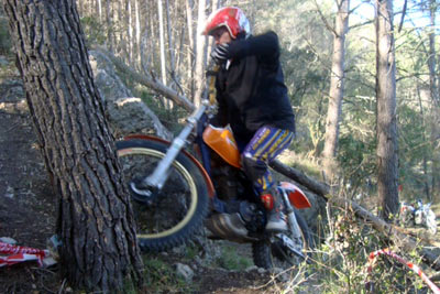 El Motoclub Sense Peus ha cumplido 10 años, para algunos será poco tiempo, pero para otros es mucho, mucho tiempo y sacrificio. Pensamos que la mejor manera de celebrarlo sería pasar un buen día con las personas que más a gusto estas, y que encima tenemos la misma afición EL TRIAL, y depaso celebrar también el cumpleaños del alma máter del club, Javier Gil. Lo normal hoy en día cuando me invitan a un cumpleaños es para merendar, y además de tener que llevar un regalo normalmente me toca aguantar el tipo durante un par de horas, lo que dura el trámite hasta que sopla las velas el anfitrión. Lo del cumpleaños de Javi Gil del pasado domingo en Viver, no tuvo nada que ver con un cumpleaños convencional, os cuento: En primer lugar el regalo nos lo hizo él cumpleañero Javier Gil organizando un día de trial en un bello paraje, con unas zonas perfectamente seleccionadas, pensadas y marcadas para disfrutar cada uno a su nivel, nadie se libró de un aplauso independientemente de si corrías en amarillos, en verdes o en azules.