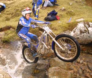 El día empezaba con una larguísima interzona por carretera, bordeando todo el lago Loch Eil, después se tomaba un tramo de campo a través, ascendiendo y descendiendo numerosas colinas en las que la hierba estaba totalmente resbaladiza. Por cualquier huella que se siguiera (aquí no hay caminos, cada uno se busca como puede por donde ir) se pasaba por profundos surcos que con el paso de las motos eran cada vez más hondos y resbaladizos, las estriberas o incluso el manillar se podía quedar enganchado, imaginaros la profundidad de los surcos. Muchos se quedaban enganchados, otros quedaban atrapados en los blackwaters, en las subidas y bajadas por las colinas escocesas la hierba no agarraba nada, y había que ir gas a fondo en cuarta o quinta, saltando sobre los blackwaters y los auténticos barrizales negros. Muchos han sido los pilotos que han tenido caídas por las colinas, muchos otros los que perdían mucho tiempo buscando una ruta alternativa para evitar esa subida o esa bajada interminables en las que se patinaba como sobre el hielo. Y todo esto aún antes de llegar a los dos primeros grupos de zonas, Doire Dhamh y Pipers Burn, a los que todos llegaban cubiertos de barro y completamente empapados.