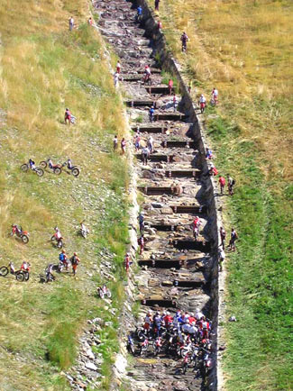 La zona 5 fue una de las más bonitas del trial. Ubicadas en el cauce de un río, tenías que remontar río arriba, con escalones separados por apenas unos metros, y de unos 60 metros de longitud. A veces no habías llegado a la mitad y ya te faltaba el aliento para acabar la sección.