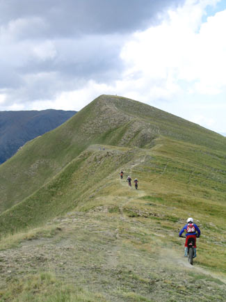 A partir de aquí la carrera se estiraba mucho porque había una larga interzona, por la cresta de una gran cordillera con un paisaje maravilloso, precioso. A uno y otro lado donde mirabas se te perdía la vista de los grandes valles, de un verde intenso, y si mirabas al cielo unas grandes águilas parecían estar siguiendo el trial.