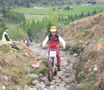Ahora toca un largo recorrido de bastantes kilómetros dirección noroeste sobre anchas pistas que van por el interior de grandes bosques, vas casi a velocidad de carretera y también aquí hay veces que debes tirar del starter para que el motor no pique biela, ya que vas en sexta (o quinta) casi a tope. Haces las dos zonas de Lubnaclach lo más rápido posible y sigues otro tramo interminable hasta el último grupo, Fersit, donde te esperan nada menos que ocho zonas. Pero no has acabado, te queda llegar hasta Fort William por la carretera principal durante 32 kilómetros, con el mango enroscao a tope y mirando continuamente el reloj... que no llego, que no llego... Si hay camiones, los adelantas, e incluso a los coches... si no has penalizado por tiempo, lo has bordado... pero aún te quedan dos días... Como podéis imaginar la cosa es cada vez más dura.
