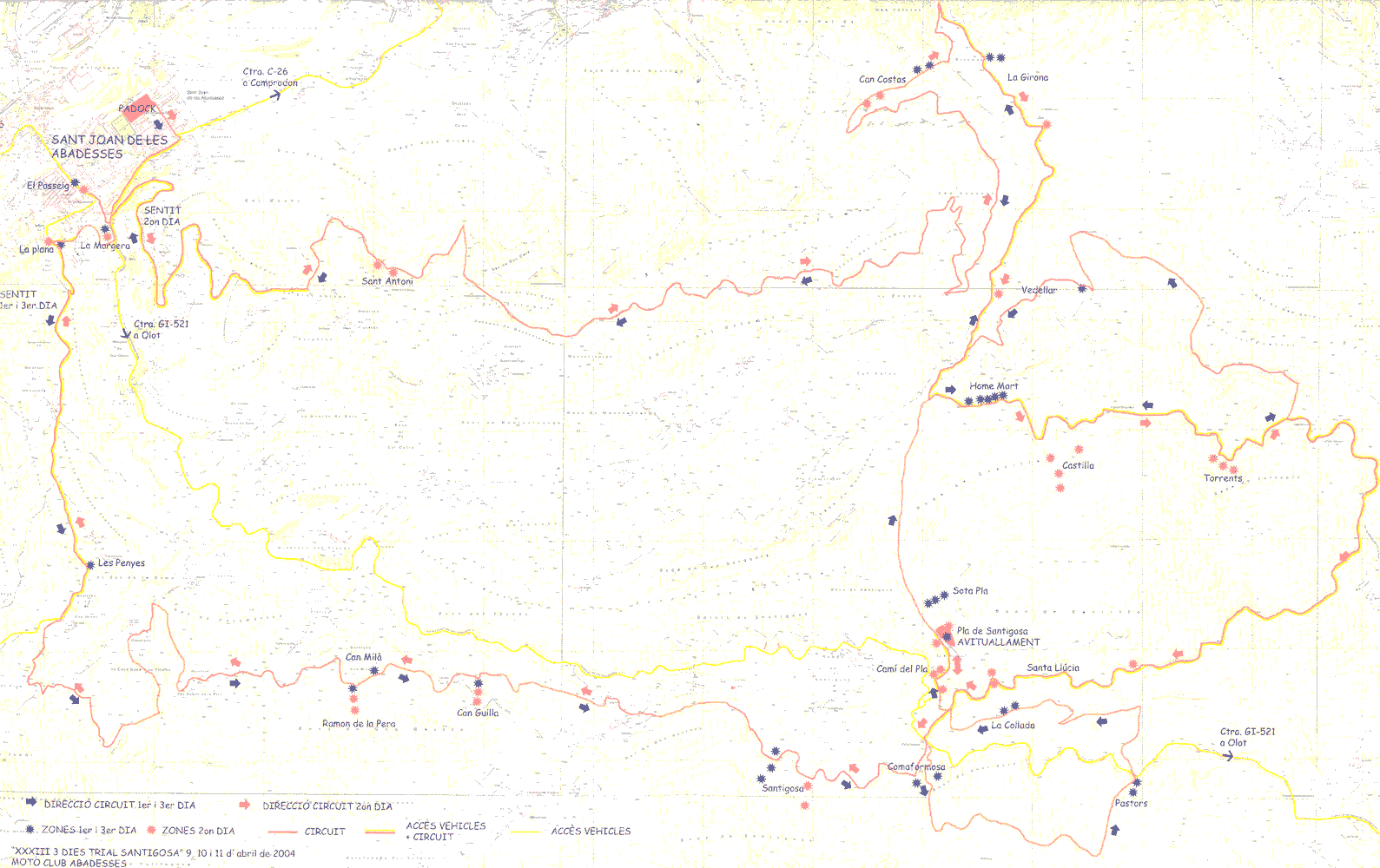 Art. 1 - ORGANIZACIÓN: por delegación de la R.F.M.E, el Motoclub Abadesses, organiza el Trial Internacional denominado "3 Dies de Trial Santigosa", durante los díes 9, 10, y 11 de abril de 2004. Este Trial se organiza segun el codigo de la FIM y de la RFME, con el correspondiente reglamento particular, al cual se someten todos los participantes por el hecho de inscribirse.