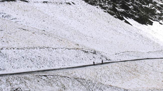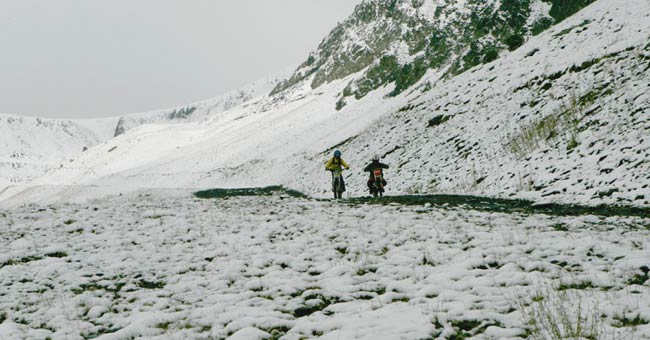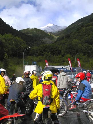 El presidente del Moto Club, con una clara nota de cómo se trabaja, subió cuando el día amanecía, a las 6 de la mañana, hasta los más alto. Era impracticable, la nieve no dejaba subir hasta lo más alto y claro, bajar era lo peor de lo peor.