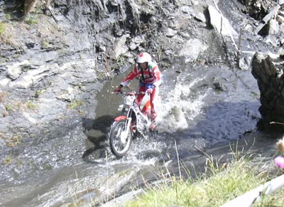 De allí, y después de una interzona dura, dura, de aquellas de lengua afuera como no lo encares bien a la primera, nos dirigimos hacia la segunda sección, una riera aparentemente sencilla, pero que tiene muchas piedras, y bailas entre el uno y el tres, pues a la que te dejas un pie y la moto deja de avanzar, difícilmente puedes salir de allí sin ir dejando pies puntuales mientras vas ascendiendo el río.