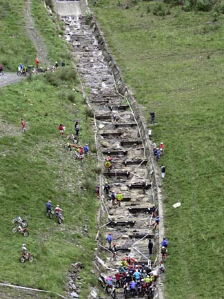 Así, la organización se puso manos a la obra, y marcó un trial en el mismo pueblo de Arinsal. Se respetaron las zonas del río, se recuperó la zona del río artificial de troncos, y se subió sólo hasta las dos zonas de la montaña que están en el riachuelo que baja hacia Arinsal, pero no más arriba.