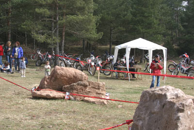 15 zonas estaban marcadas para el primer día por la mañana, alternando diversos riachuelos hasta llegar a la 15, en el famoso "pla de Santigosa." Esta última zona era muy bonita, con unas piedras muy adherentes, y gran número de público y familiares podían ver a los corredores en acción, antes de empezar la jornada de la tarde. A continuación había que entrar en el control horario, donde deberíamos dejar la moto en el recinto cerrado durante media hora, mientras aprovechábamos para comer el menú preparado por la organización en las carpas montadas a tal efecto.