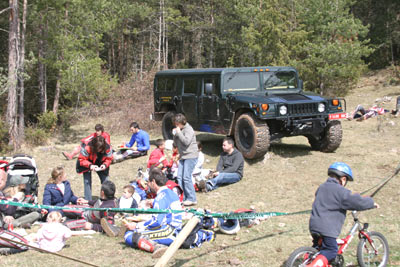 El primer corredor del segundo día, arrancaba de nuevo bien temprano, hacia las ocho de la mañana volvían a rugir los motores en el pabellón municipal. Después de dejar mi bidón de gasolina en el remolque de repostaje, que nos serviría de nuevo la gasolina a medio día en el "Pla de Santigosa", preparé mi mochila para lo peor: la lluvia. Los pronósticos del tiempo hablaban de precipitaciones, cosa que hubiera convertido la jornada en la típica carrera contra el barro, algo muy habitual en Santigosa, pero la lluvia esta no hizo acto de presencia, y pudimos disfrutar de nuevo de un día soleado, que marcó de nuevo el ritmo de carrera con unas puntuaciones muy bajas...