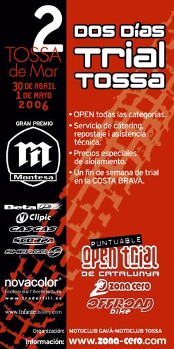 El 30 de Abril y 1 de Mayo el Moto Club Gavà junto al Moto Club Tossa ponen en marcha la segunda edición de los 2 díes de Tossa, si te lo pasaste bien en la primera edición, esta segunda promete aún más. Pasa el largo fin de semana en la Costa Brava con espectaculares vistas. Las principales características de la prueba son: