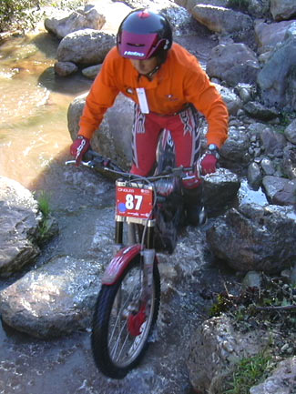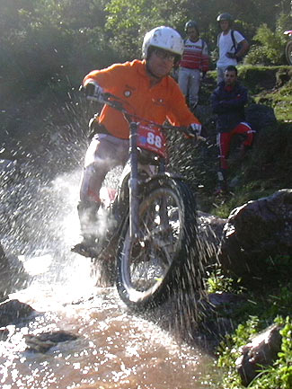 En la categoría de azules, dos fenómenos del trial marchaban en las primeras posiciones destacándose ligeramente de sus perseguidores. El primer puesto era para el preparador e ingeniero de Gas Gas Claudi Obrador con 28 puntos, seguido de cerca por el campeón veterano y también experto en triales de larga duración Carles Casas con 30. Algo más atrás, con 41 estaba pere Camp, seguido del veterano valenciano Germán Barrios con 43, Jordi Serratosa con 45, Albert Sans y Enrique Daroqui Peris con 47... Como veis, la clasificación estaba muy apretada.