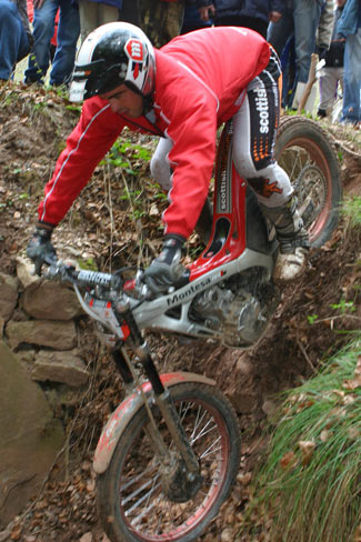 Lampkin fue el último en llegar, y Cabes había compartido comida con todos los corredores, y es que el Británico venía con vuelo directo de Yorkshire, alquiló un coche en Girona, y condujo hasta Sant Joan. Allí le esperaba su flamante moto para la carrera, pero es que, después de la carrera dejó apoyada en un árbol la moto, cogió una trialera de serie y se fue pitando para coger el vuelo de vuelta para Inglaterra, que salía en menos de una hora!!! Este campeonísimo tiene mérito por sus títulos y por el esfuerzo que realiza en pro del Trial.
