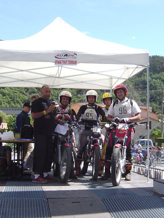 La prueba al parecer había sido denunciada ante estancias francesas y europeas, y poco antes de su comienzo en la edición del año pasado se estaba a la espera de la sentencia del tribunal. Uno de los días durante la comida, Maya, su principal impulsor, cogió el micrófono del speaker para darnos a todos la gran noticia... la sentencia había sido totalmente favorable a la celebración del trial, dando como válidas todas las argumentaciones de los trialeros, en contra de las absurdeces esgrimidas por los llamados ecologistas. Los gritos y aplausos llenaron la estancia, ¡¡¡ el trial había vencido !!! Deberíamos tomar nota en España, pero es que está claro que en Francia aún nos llevan unos cuantos años de ventaja en todo, y también en sentido común...