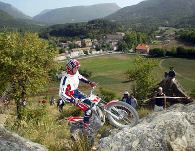 El segundo día el recorrido era de 84 kms con 23 zonas de Digne les Bains a Senez, dónde está el Espace Loisir Boade, una gran area de off-road de unas 800 hectareas donde Maya, el organizador, tiene un gran complejo de trial, enduro, cross, quads y deportes de aventura y dónde este año tuvo lugar la prueba francesa del Mundial de Trial. Allí hay zonas de entreno, circuitos de motocross, caminos para enduro, además de bungalows, habitaciones, restaurante piscina, y una tienda-taller especializada en motos de campo, Motos Maya. Realmente impresionante y envidiable.
