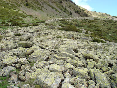 (con más o menos agua), tierra, roca, pedregales de granizo (tarteras),