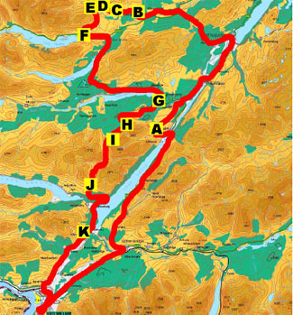 99 Millas - 158,5 Kms, 7 horas 40 Minutos + parada de descanso (15 min.) Visibles al publico: Laggan
