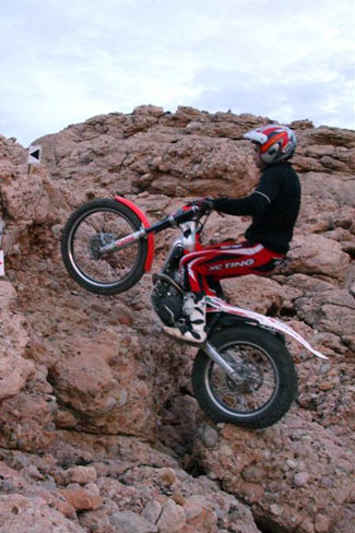 Siguiendo el recorrido llegábamos a “El Mirador”, que es una zona todo de rocas al lado del mar. Estas rocas por la erosión marina, presentan un agarre impresionante para las motos, por lo que a priori parecían muy difíciles, pero al realizarlas se pasaban perfectamente.