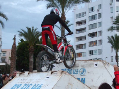 trial en moto aquí en los Dos Días de Ibiza, y el showman