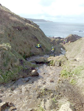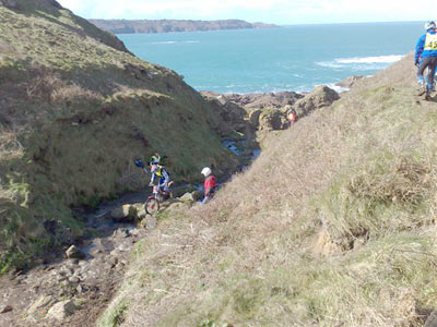 Todas estas eran de piedra con muchas subidas y laderas. Tras ellas continuábamos el recorrido hasta la playa cercana a "The Devils Hole" (el Agujero del Diablo.) Aquí, en una preciosa playa con maravillosas vistas al mar, encontramos las zonas 14 a 17. También estaban marcadas sobre torrentes con mucha agua y rocas muy resbaladizas. Y luego vuelta a la salida y a dar otras dos vueltas más.