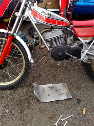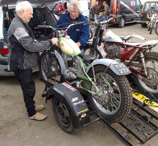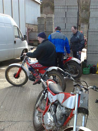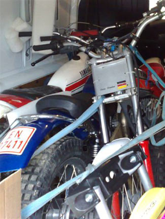 Nosotros (Heinz Wiemeier con Beamish Suzuki 250, Michael Fanken con Yamaha Majesty 250 y yo, Michael Ernst con Yamaha TY 250) llegamos el jueves. También trajimos la moto de nuestro amigo Bruce Watts en la furgoneta, pues Bruce viene desde un poco más lejos… concretamente desde Johannesburgo, la capital de Sur África. Bruce guarda su Honda 250 TL en mi casa para los triales que viene a correr en Europa… eso sí que es afición!!!