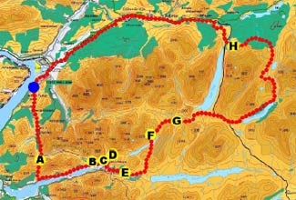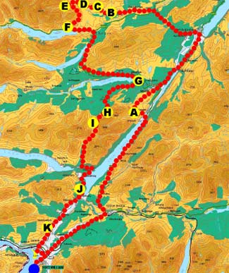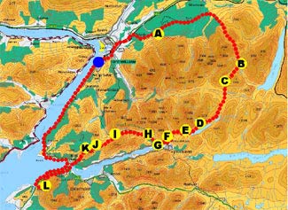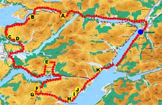 58 Millas - 93 Kms, 6 horas 20 minutos + 30 minutos neutralizados hasta paddock La diferencia respecto al pasado año es que del grupo E al L se irá por la orilla derecha del Loch Leven, por lo que será 19 kms más corto y los grupos de zonas F a K son nuevos respecto a 2007. Visibles