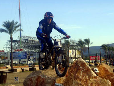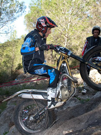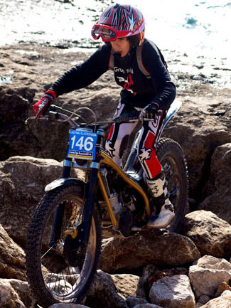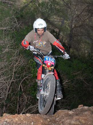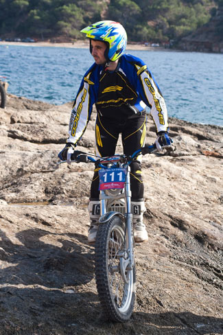 En la categoría máxima o nivel negro, destacaba la participación de nada menos que tres ex-pilotos top mundialistas, los ya mencionados Jordi Pascuet y Marcel Justribó, a los que se unía Josep Manzano. Los dos primeros siguen dentro del mundillo trialero con su Trial Show y sus numerosos cursillos, mientras que Manzi está desconectado totalmente del trial y muy dedicado a sus estudios, por tanto era una agradable sorpresa volver a verle en acción, y es que el piloto de Navàs aparece de vez en cuando y precisamente en esta cita de Ibiza.