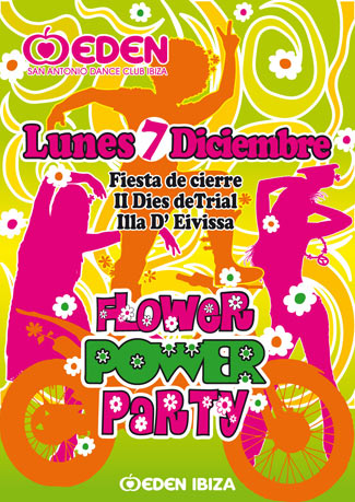 Pero como no todo es Trial, al terminar los Dos Días de Ibiza, como cada año nos espera una fiesta inigualable, un fin de fiesta con todos los amigos. Para empezar bien la noche del día 7 comenzaremos con la cena en el Barbacoa Gala Night, como de costumbre y después... una fiesta FLOWER POWER en la discoteca Edén (en San Antonio).