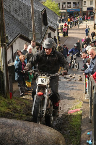 Cojes la carretera que sube hacie el Ben Nevis y a seguir... Se llega entonces a las zonas de Achintee, que son nuevas desde el año psado y después sigues subiendo hasta las seis duras zonas de Ben Nevis, con piedras muy grandes, resbaladizas y con mucha agua. Con las dos zonas de Nevis Forest anuladas, tienes un respiro y mucha más tranquilidad para completar el recorrido en el tiempo, ya sólo queda llegar a Fort William, cruzar el pueblo por estrechas calles y llegar a una de las zonas más antiguas de la carrera, Town Hall Brae, una cuesta junto a un muro, entre las casas del pueblo, a la que hace unos años se le han añadido unas piedras grandes porque ya resultaba muy facil para las motos acuales.
