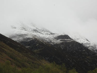 El mal tiempo continúa en los highlands y además empeorando, los vientos son fortísimos y están causando destrozos por todas partes y además con el frio se hacen aún más insoportables. Pero es que además las cotas de nieve siguen bajando y aunque hoy no hay peligro en el recorrido, pues discurre por la costa, sí que podría afectar al sexto y último día, ya que se sube cerca del Ben Nevis, la montaña más alta del Reino Unido, que está justo al norte de Fort William.