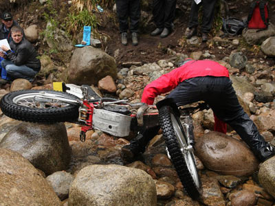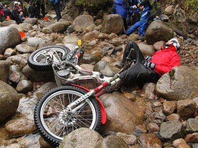 Esta edición de los Scottish está siendo de las duras de verdad, y para ilustrarlo aquí tenemos los comentarios de Carlos Casas sobre la jornada de ayer: "Ayer martes, segundo dia de carrera, los últimos pilotos lo tuvieron bastante mal debido al fuerte aumento de caudal de los ríos y de los torrentes donde había las zonas, estas pasaron de fáciles a muy difíciles y con paradas de muchas motos por culpa del agua. Es peor ir detrás en el recorrido ya que lo que es campo a través, es un autentico barrizal y en los blackwaters no sabes por donde pasar, ya que es mejor pasar por donde no haya pasado ninguna moto. Decir como anectota que yo iba en un grupo con Michael Brown y que al llegar a un doble río al final de la famosa valla, nos tuvimos que poner de acuerdo para pasar entre 3 pilotos cada moto a pie por dentro del río y con agua hasta la cintura !!!"