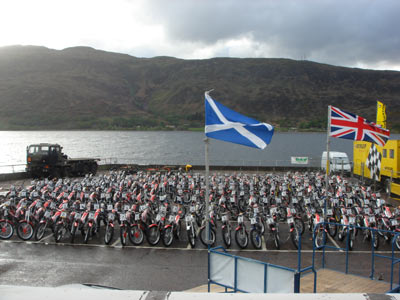 Y por la tarde la tradicional cabalgata, en la que todos los pilotos divididos por países cruzaron la calle principal de Fort William, que se encontraba repleta de gente animando a estos 280 valientes que están a punto de iniciar una nueva edición del trial más largo y duro del mundo.