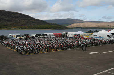 Todos los camiones y carpas de los equipos tenían ya preparados sus stands, así como las numerosas tiendas en cuyas carpas y roulottes se podían adquirir todo tipo de repuestos y accesorios a última hora, una chaqueta para la lluvia, unas botas, un casco, unas gafas con mascarilla ideales para esta carrera, cadenas reforzadas, suplementos para el guardabarros, portamatrículas... todo lo que imaginéis.