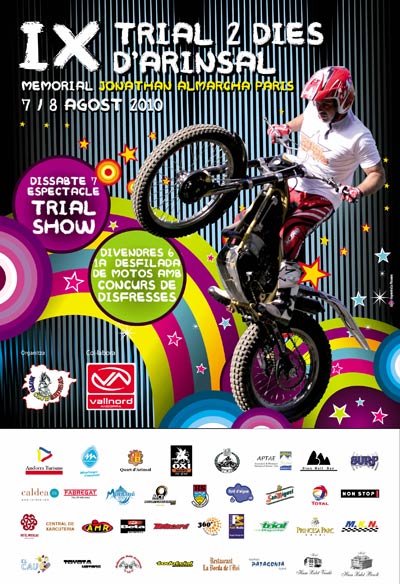 Como ya os habíamos anunciado previamente en las noticias de Todotrial.com, este año vuelven los dos días de Arinsal, que en su novena edición nos tienen reservadas interesantes novedades, además como veis en el cartel se hará homenaje al fallecido piloto andorrano Jonathan Almarcha.