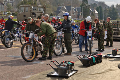 El paddock es siempre un hervidero de actividad el domingo, con los pilotos solucionando los arreglos de última hora, haciendo pequeños ajustes en sus máquinas y decidiendo que recambios o herramientas esenciales llevarán con ellos para la aventura que les espera. Las mochilas se rellenan y vuelven a llenar en varias ocasiones y el espacio y el peso se convierte en el principal tema de conversación entre los competidores que han viajado hasta Fort William desde todas las partes del mundo, incluso lugares tan lejanos como Australia, para participar en este evento único.