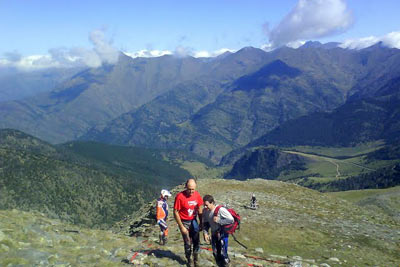 Vuelta hacia abajo por el mismo camino tras disfrutar de uno de los pasos míticos de Arinsal, y comienza otro recorrido no menos mítico, buena bajada y después subida por el sendero de la cuerda del Port Negre. Arriba del todo no pueden faltar algunas fotos de grupo.