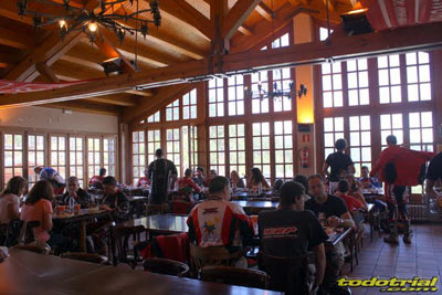 Ducha, descanso y cena, en el caso del Hotel Princesa Park en un excelente bufette donde encontrarás todo lo que te imagines, y con más de cien mesas llenas de... trialeros... espectacular, un ambiente que recuerda el de las jornadas de esquí en invierno.