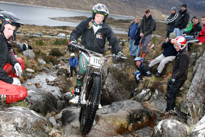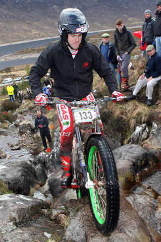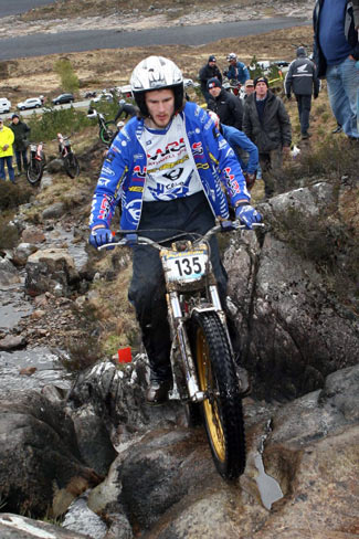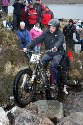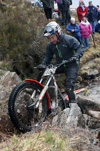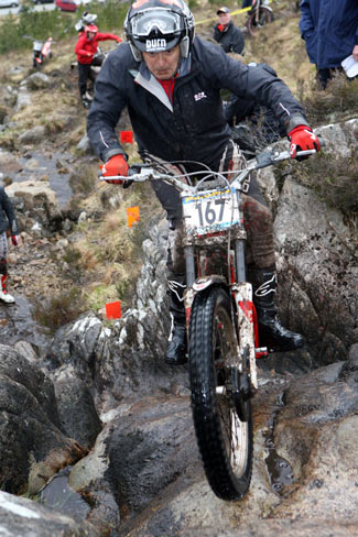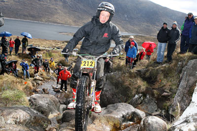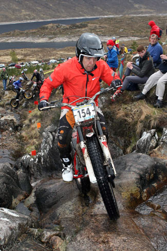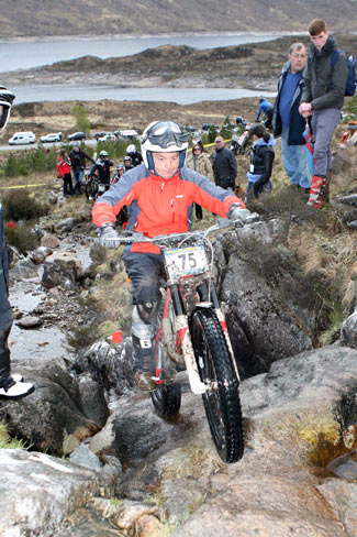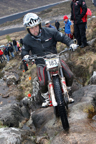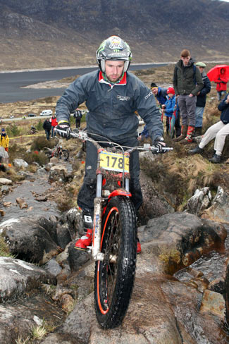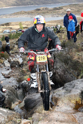 Además este año está habiendo bastantes problemas en las carreteras de Fort William, ya que las obras de la nueva vía de circunvalación que rodea la ciudad llevan se están alargando mucho. Las obras llevan ya más de tres meses y estan complicando mucho las cosas a los seguidores del trial que siguen la prueba en coche. Volviendo a lo que es el recorrido del día, con 165 kilómetros, este comenzaba por un largo camino por asfalto hasta las míticas zonas de Laggan Locks, que son de las más antiguas y consisten en largas subidas de piedra suelta, sin demasiada dificultad las dos primeras y la tercera con piedras cada vez más grandes. Los siguientes grupos de Forest Gate, Meall Damh, Creag Nan Gobhar, etc han sido bastante más complicados, con las cascadas bastante resbaladizas. Las 5 zonas de Creag Lundie han sido las más visitadas del día, donde disfrutar del paso de los pilotos con vistas desde lo alto al Loch Cluanie. Tras la cancelación de Glas Bheinn el trial ha finalizado en la única zona de Witches Burn.