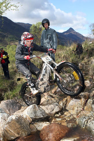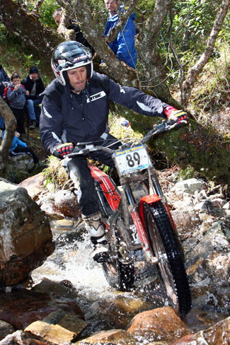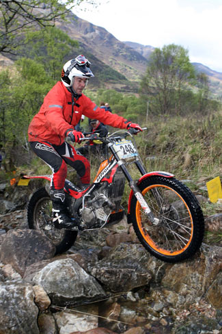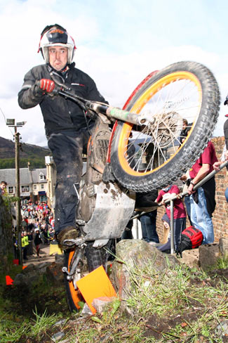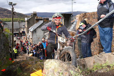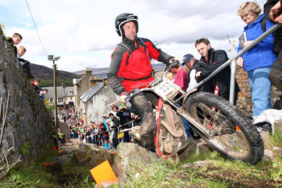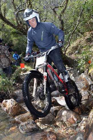 Y así fue, el empate era total, incluso a ceros, unos, doses, treses y cincos... lo que ha aumentado la incertidumbre. Más igualdad y emoción no se ha visto antes en un trial, y esto forma parte de lo grande e interesante de esta prueba. Así por fin a final de la ceremonia de entrega de trofeos, que daba comienzo a las 21:00 (20:00 hora española) se ha desvelado el ganador, como si de una entrega de los Oscar se tratase... And the winner is??? Y el ganador es??? Dougie Lampkin!!! Impresionante final para Dougie que de este modo suma nada menos que el record con 6 victorias, ¡y la primera fue en 1994! El desempate se ha deshecho por la norma que dice que ganará quien más tiempo se ha mantenido sin poner un pie, y este ha sido Lampkin al no penalizar ningún punto en los dos primeros días. Por tanto el segundo puesto ha sido para Dabill, también con 15 puntos, y el tercero para Michel Brown con 21, que al penalizar un 5 en una de las últimas zonas de Achintee perdía todas sus opciones de victoria.