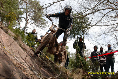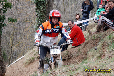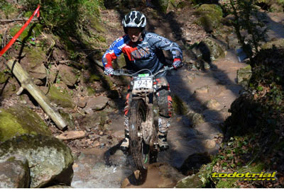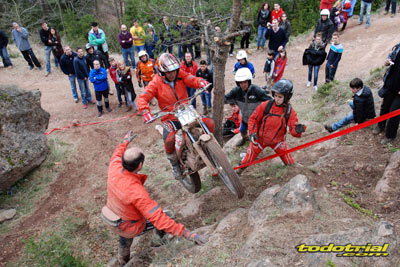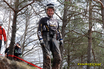De nuevo el sol hizo acto de presencia, y solo a partir de las 4 de la tarde, la lluvia embarró las últimas secciones, que además eran todas de laderas empinadas de tierra, convirtiéndose en imposibles subidas de barro. Este hecho, después de todo el esfuerzo, hizo que Pascuet no pudiera subir la última zona "La Margera" que se había embarrado totalmente hasta el punto que casi no se podía ni arrancar. Una zona espectacular que se hace en tercera o cuarta marcha y en la que Pascuet penalizó el único fiasco de todo el trial. Los pilotos que estaban en carrera a las 4 de la tarde, vieron también como se les complicaban las cosas justo cuando ya estaban acabando. Por lo tanto esta circunstancia decidió los puestos de cabeza y algunos más, favoreciendo a quienes en esta jornada habían salido antes. Y es que en Santigosa si llueve y las zonas son de riachuelos (la mayoría), no importa, pero las zonas que son de barro, se convierten en prácticamente infranqueables. Como hemos comentado, son muchos los aspectos que se han de considerar en este trial para hacer un buen resultado, y si Pascuet hubiera llegado 10 minutos antes, seguramente hubiera subido sin problemas esta sección. Pero Moret llevaba varias ediciones avisando, y esta vez su gestión de carrera y su buen hacer en las dos primeras jornadas le han permitido inscribir su nombre en los 3 días de Santigosa en la máxima categoría. Algo que sin duda merece pues es vecino de la localidad y miembro del Moto Club Abadesses.