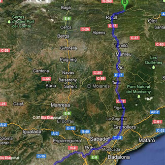 Si vienes de la zona centro (Madrid), lo más rápido y barato es ir por la autovia A2 hasta Zaragoza, una vez allí coger la AP-7 (de peaje) direccion Lleida (Lérida) hasta la salida nº 4 Fraga (importante tomar esta salida por que sino la autopista te envía para Barcelona y haces un rodeo importante y encima te hinchan a peajes). Tomando la salida 4 hacia Fraga entrar en la autovia A2 direccion Lleida, continuar por la autovia A2 y una vez lleguéis a Cervera tomar la salida 518 hacia la autovia C-25 (EIX TRANSVERSAL) direccion Manresa, Vic, Girona. IMPORTANTE TOMAR LA C-25 es la ruta más rápida, cómoda y barata, la autovia C-25 es una carretera que acaba de desdoblarse a 4 carriles, las obras ya están finalizadas y en menos de hora y media te lleva de Cervera hasta Vic. Una vez en Vic coger la autovia C-17 (antigua N-152) dirección Ripoll y una vez allí tomar la carretera N-260 (antigua C-153) hasta Sant Joan de les Abadesses. Si vienes de la zona levante (Valencia), sólo tienes que seguir la Autovía del Mediterráneo, AP-7 hasta Mollet del Vallés, donde se toma la C-17 dirección Granollers y Vic, para seguir hasta Ripoll y después la N-260 hasta Sant Joan de les Abadesses.