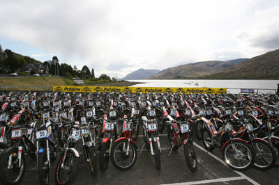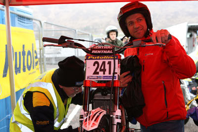 Competidores de lugares tan lejanos como Estados Unidos, Japón, Australia, Canadá y más de veinte países, se han reunido en Fort William este domingo para completar los trámites de verificación antes del primer día del Scottish Six Days Trial (SSDT) 2013. El aparcamiento del West End, que servirá como campo base para el evento en los próximos seis días ha sido la bulliciosa meca del trial durante todo el día a pesar de las condiciones de humedad. Los pilotos llevaban a cabo los últimos preparativos de cara a la semana de aventura que que les espera. Hay casi doscientos setenta pilotos de países como Suecia, Kenya, Estonia y Andorra, formando una mezcla de deportistas aficionados y profesionales, los cuales competirán exactamente en las mismas zonas y recorrido, ya que en este trial no hay niveles de dificultad. Todos recorrerán casi 800 kilómetros hasta el próximo sábado por la tarde.