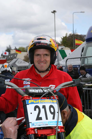 El 12 veces campeon del mundo de Trial Dougie Lampkin, que cumplirá 37 años a finales de este mes, ahora cita el Scottish como si afectivamente fuese para él la competición más importante del año, tras haberse retirado del Campeonato del Mundo de Trial en las recientes temporadas. Con esta idea en su cabeza no es dificil apreciar por que Dougie sigue determinado a conseguir su 7º SSDT cuando se desplaze a las Highlands el próximo mayo.