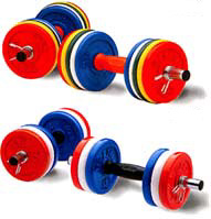 2º- Para el ejercicio con pesas, ya que no podemos ir al gimnasio podremos comprar unas mancuernas (es la barra y las pesas) a las que podremos poner el peso que mejor se adapte a nuestras posibilidades. No os asustéis por que las podréis encontrar en cualquier centro comercial y además a un precio bastante asequible.