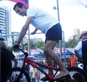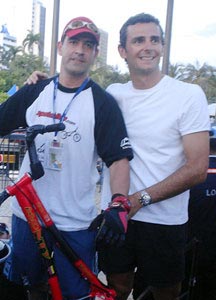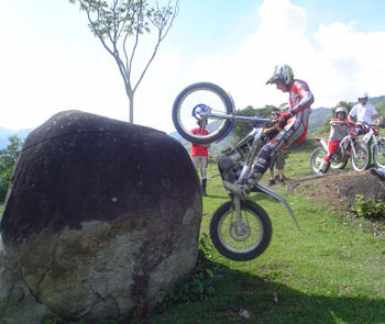 Os adjuntamos algunas fotos, en las que puede verse tanto a Juan Pablo Montoya como a Pedro Martínez de la Rosa justo después de firmar el acuerdo como pilotos de Biketrial, y tras recibir sus monturas. Fue durante la "Carrera de las Estrellas" en Colombia, junto al profesional colombiano Javier Zapata, con quien tuvieron un pique posterior en el que todos resultaron muy igualados, tal como podéis ver en las fotos. Quien iba a pensar que Montoya y De la Rosa dominan tan bien esto del trial y menos que sirva como entrenamiento para la Formula Uno!!! Pincha las imágenes para ampliar