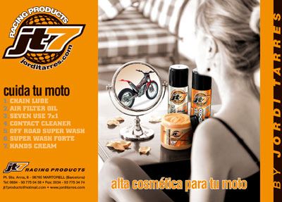 La primera gama de productos JT7 está orientada al cuidado y mantenimiento, y tal como dice su publicidad es "alta cosmética para tu moto". Cuenta con grasa para cadenas, acaite para filtros, contact cleaner, spray multiusos, dos productos de limpieza y la crema para manos.